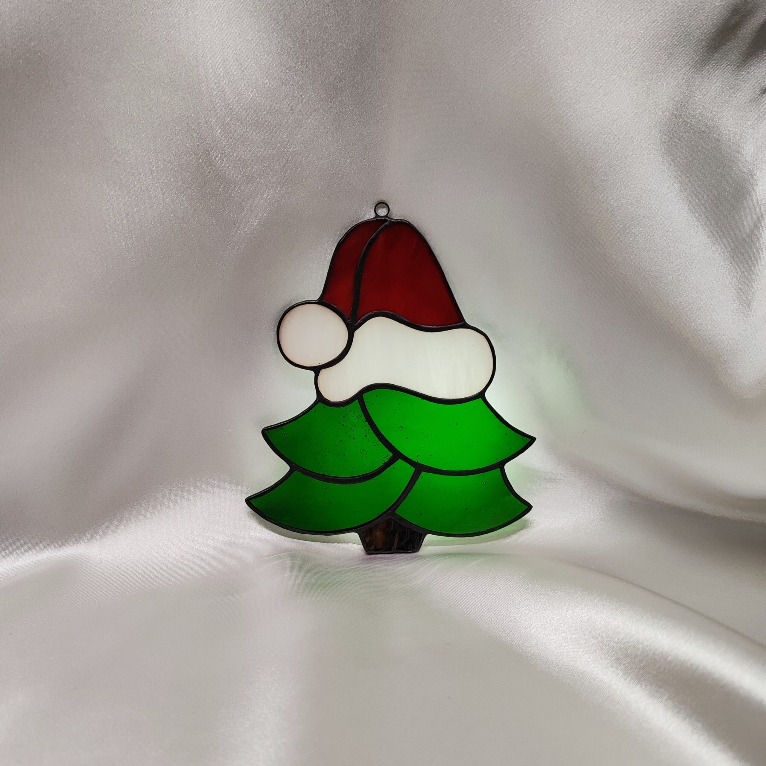 Ta wyjątkowa dekoracja, o wymiarach 13 cm na 11 cm, łączy w sobie klasyczną świąteczną symbolikę z radosnym, lekkim akcentem. Witrażowa choinka ozdobiona czapką Mikołaja natychmiast wprowadza w świąteczny nastrój i wywołuje uśmiech – to idealny drobiazg dla osób kochających niepowtarzalne, ręcznie wykonane ozdoby. Każdy produkt wykonujemy na indywidualne zlecenie i dokładamy wszelkich starań aby był najwyższej jakości, dlatego też czas realizacji to około 21 dni. Po złożeniu zamówienia informujemy dokładnie o czasie realizacji.